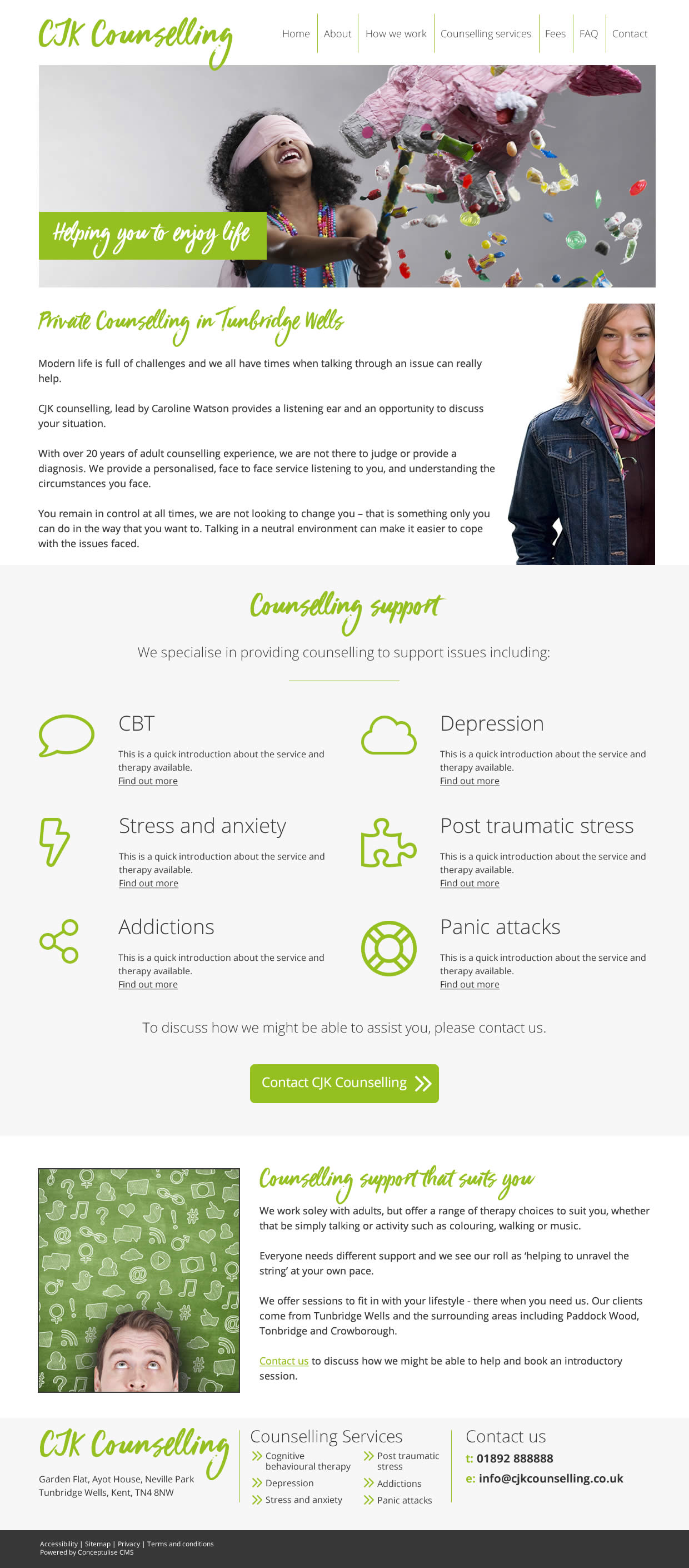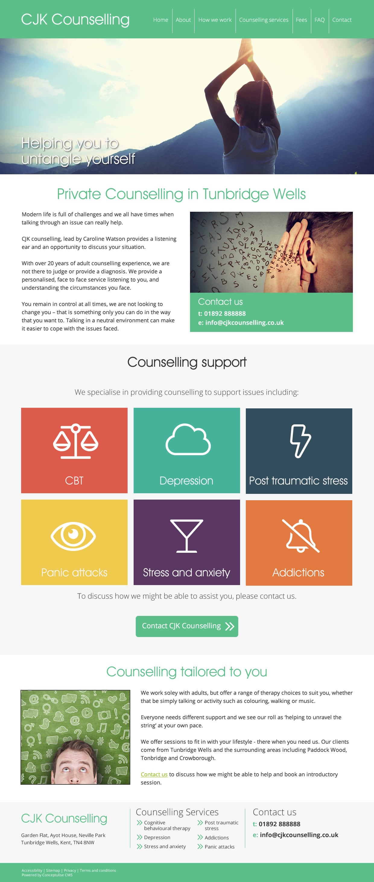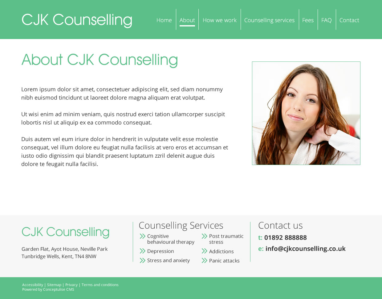 Below are three initial designs for the CJK Counselling website. Designs include sample content simply as placeholders to demonstrate the use of space.