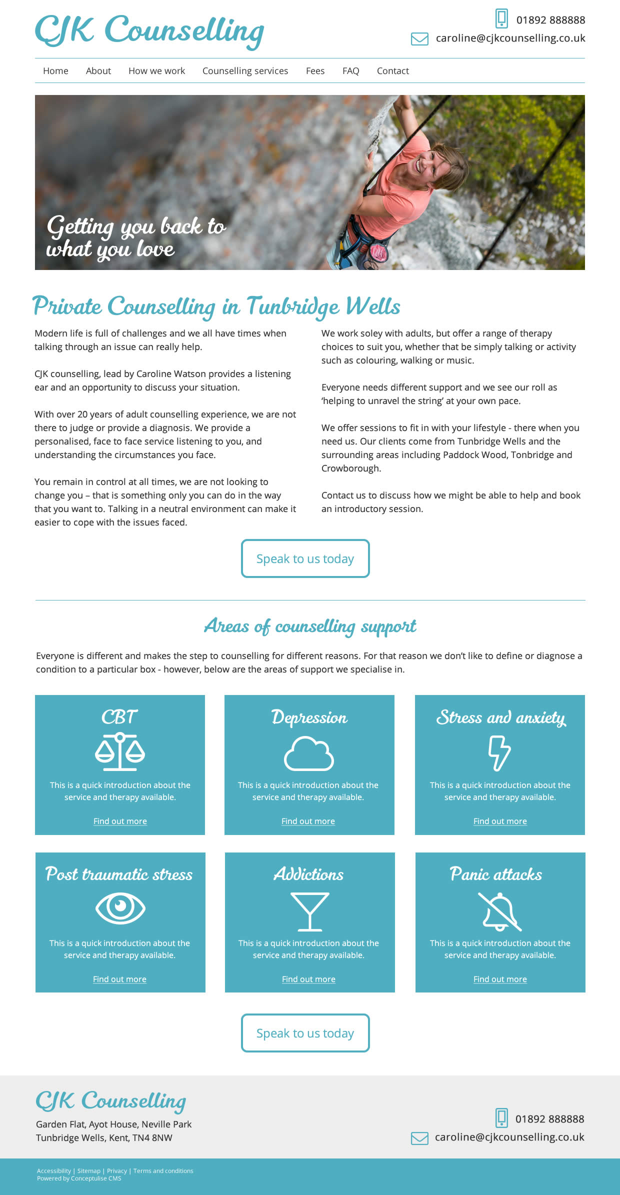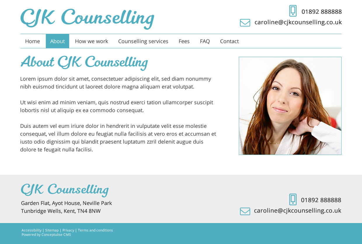 Below are three initial designs for the CJK Counselling website. Designs include sample content simply as placeholders to demonstrate the use of space.
